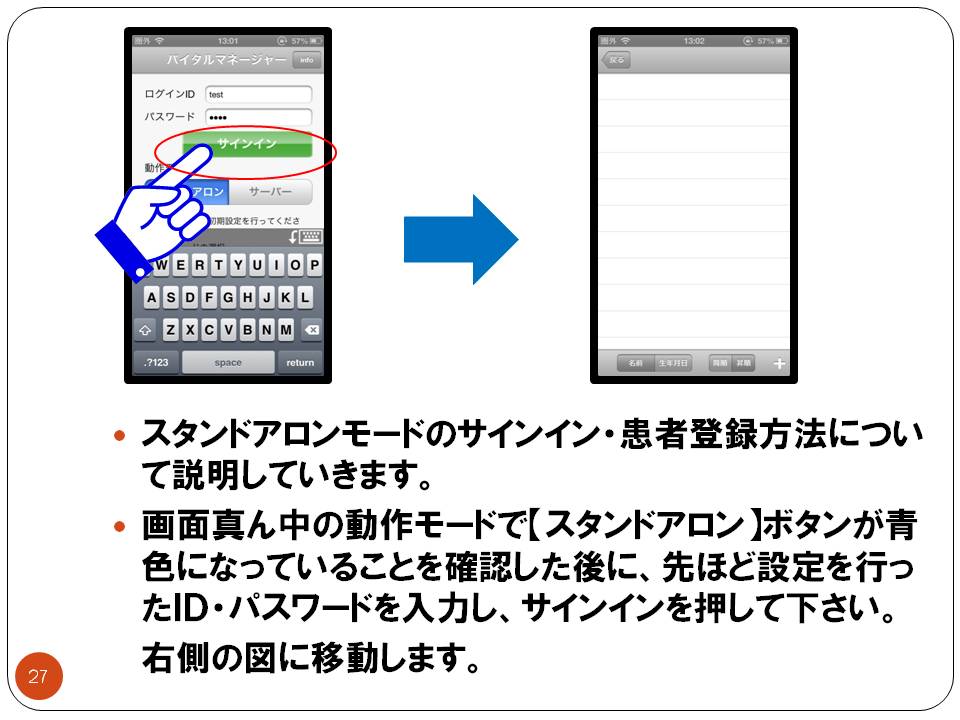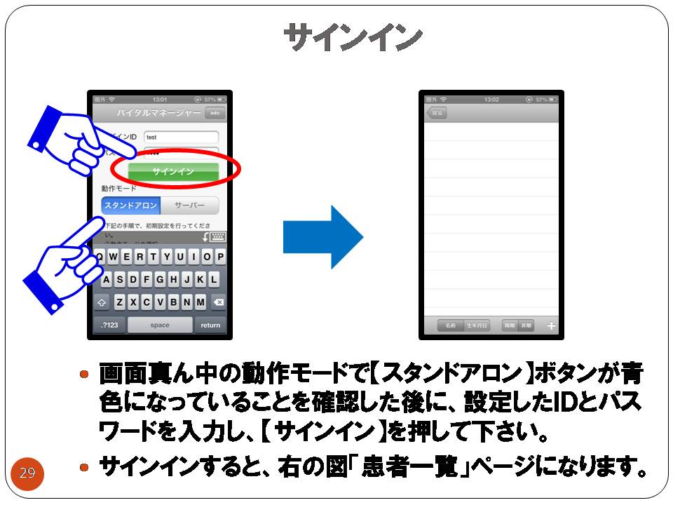 スタンドアロンモードのサインイン方法・患者登録方法について説明します。